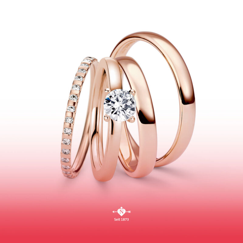 Warm, strahlend, besonders: Roségold erinnert an Sonnenuntergänge und zarte Sommermomente. Die edle Goldlegierung schimmert in sanften Rosé- und Apricottönen und bringt jedes Schmuckstück zum Leuchten. Ob pur oder mit funkelnden Diamanten – Roségold verleiht Deinen Trauringen eine elegante, sommerliche Leichtigkeit. ✨Hast Du schon Deinen Roségold-Traum entdeckt? Jetzt ist die schönste Zeit dafür!