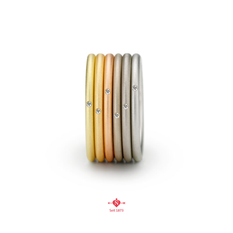Ob Gelbgold, Weißgold oder Roségold – jede Legierung erzählt eine andere Geschichte. Wusstet ihr, dass 750er-Gold für seine perfekte Balance zwischen Reinheit und Haltbarkeit geschätzt wird? Aber auch andere Legierungen haben ihre Vorteile. So wird Eure Liebe in jedem Ton glänzen. Lasst Euch von uns beraten und findet die Ringe, die zu Euch passen!