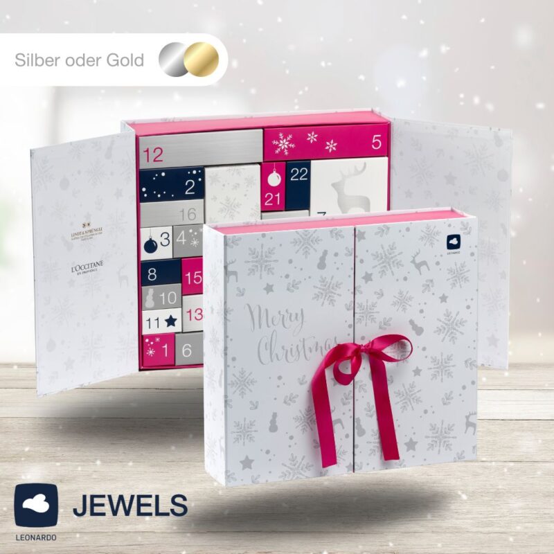 Hinter jedem Türchen verbirgt sich eine besondere Überraschung: Edler Schmuck und ausgesuchte Glasartikel von LEONARDO, luxuriöses Pflegeprodukt von L’occitane oder feine Lindt Schokolade.
