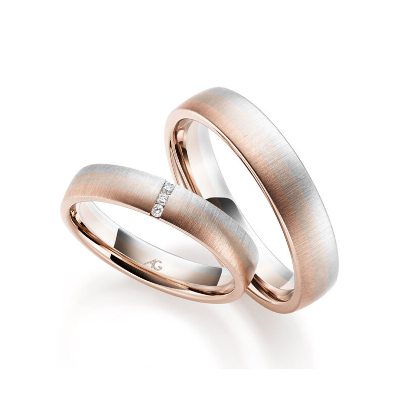 Die Kombinationsmöglichkeiten sind vielfältig. Ob das kontrastreiche Zusammenspiel von Gelbgold und Platin, die ineinander übergehende Verbindung von Weißgold und Palladium, oder eine Kombination aus Rosé-, Weiß- und Gelbgold.