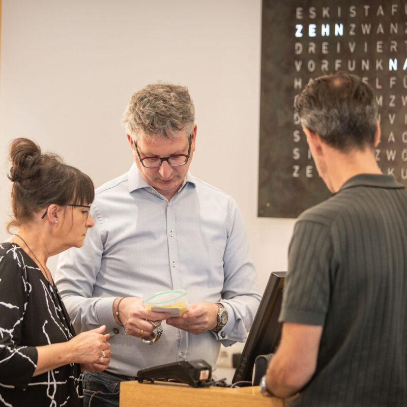 Bei uns darfst Du Schmuck anfassen, anprobieren, vergleichen und dabei ganz in Ruhe herausfinden, was wirklich zu Dir passt. Wir beraten Dich ehrlich, freuen uns mit Dir über besondere Stücke und manchmal entsteht dabei sogar ein kleines Lieblingsstück, das Du online vermutlich nie entdeckt hättest.
